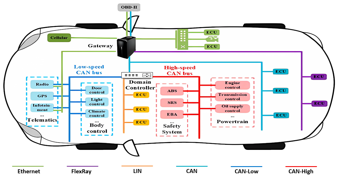 在汽車系統內部控制逐步向自動化和智能化轉變的今天,隨著由ECU控制的部件數量不斷增加,汽車上用于傳輸數據的串行總線也變得多樣化。從I2C、SPI、UART到CAN、CANFD、CXPI、SENT、LIN、FlexRay、BroadR-Reach和MOST等,這些串行總線在不同的安全性、成本和傳輸速度要求下應運而生。